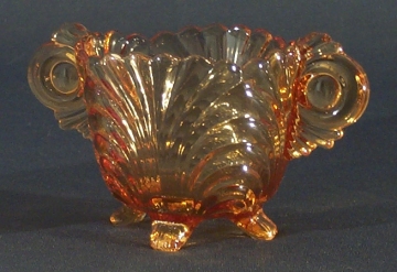 Mocha was introduced March 25, 1938, and was discontinued October 16, 1943, due to raw material shortages in World War II. Mocha is most commonly seen in Caprice and Gyro Optic lines. It was also one of the colors in Varitone and Harlequin sets. As can be seen below, Mocha is very similar to the earlier Madeira color. To the naked eye, there is a little more of an orange cast in the Madeira items. |